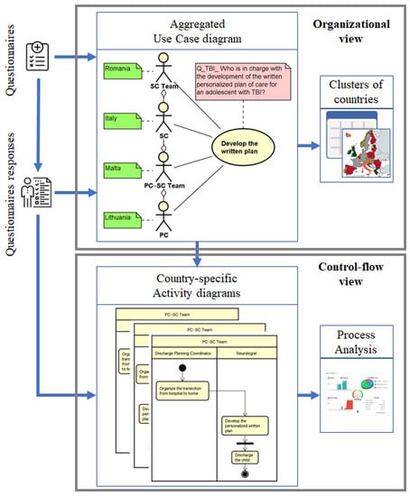 The management and provision of primary care services for children differ considerably from country to country [], being developed over time according to socio-cultural and economic policies, and regulations that influence the types and ways healthcare services are provided. Embedded in health systems, which are complex organizations per se, they may encompass different aspects of care, privilege specific phases and/or conditions of child development, or implement particular solutions at either organizational or structural levels. Moreover, the evaluation of the achievements of the emerging guiding principles of quality of care [] makes it necessary to analyze the different components that contribute to their fulfilment, suffice to think of quality principles, such as early-disease diagnosis, equity of access and integrated care. The evaluation of the degree of achievements, especially under the perspective of an inter-country comparison, requires the identification and analysis of a mix of interrelated aspects. They range, for instance, in the case of integrated care, from the coordination among health specialists to the one involving also social and/or school professionals, from the use of shared information tools to the planning and scheduling of common pathways of treatments. This means that along with the analysis of national policy statements, available resources and health outcomes, it is necessary to consider the procedural and organizational features implemented at country level and in real-life scenarios. To achieve this goal, we propose to introduce the Business Process Management (BPM) techniques [,] to complement and triangulate data that assess the quality of health systems. In this way, BPM contributes to consider aspects rarely analyzed within health processes [,], such as comparison across countries and across services, the organizational view that underscore the role and task distribution of human resources, the identification of complex KPIs (Key Performance Indicators), such as those indicating equity of access, continuity and integration of care that may be tackled in different parts of healthcare processes.