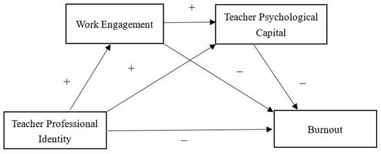 Furthermore, work engagement and PsyCap could sequentially mediate the relationship between teachers’ professional identity and burnout. Research has shown that work engagement can be predicted by professional identity and is associated with PsyCap [30,31]. A longitudinal study found that PsyCap can be affected by work engagement [32]. According to the JD-R model, job resources can be divided into personal and work resources [25]. In this study, work engagement is a work resource and PsycCap is a personal resource. Work-related resources can facilitate the building of PsyCap to a certain extent [32]. PsyCap can trigger an individual’s intrinsic motivation, thereby reducing the burnout level [33]. Thus, this study hypothesizes that work engagement and PscyCap mediate the relationship between teachers’ professional identity and burnout sequentially.