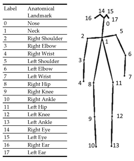 The anatomical landmarks generated by the pose estimator (OpenPose).