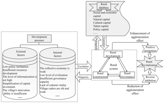 Rural development is the key to the implementation of rural revitalization, and it is a dynamic process that is constantly optimized through self-organization and structure. Rural development is the result of endogenous drivers, exogenous drivers, physical spaces, humanistic spaces, and the joint action of these factors in the different stages of development; and the interaction among factors can be considered to be part of a dissipative structure and nonlinear open system that is far from equilibrium [77,78]. Rural construction is an important task in the implementation of the rural revitalization strategy, and the basis of all of this is rural governance.
