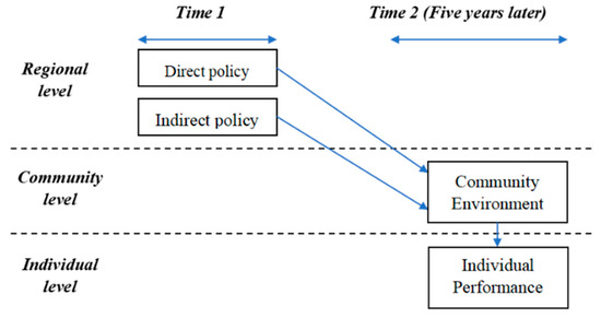 Our framework is multilevel, with policy strength measures at the provincial level, physical environmental variables at the community level, and social participation at the individual level. A multilevel model is a perfect fit for the research questions that we are interested in [33]. Using multilevel models, we can deduce whether older people who live in provinces with quantified targets participate social activities more often, while taking into consideration community environment, demographic characteristics, SES, and health status at the individual level.