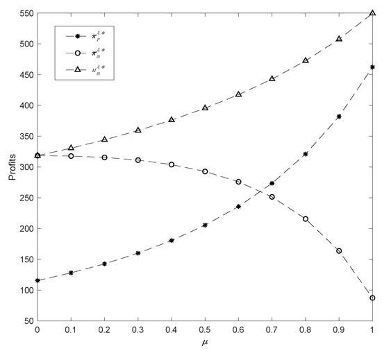 where μ is the altruistic preference level of the manufacturer towards the retailer, and μ ϵ (0, 1). We can see that the larger the coefficient of altruistic preference, the higher the utility of the manufacturer. As in Section 4.2, the optimal solutions for Model A are provided in Proposition 4.