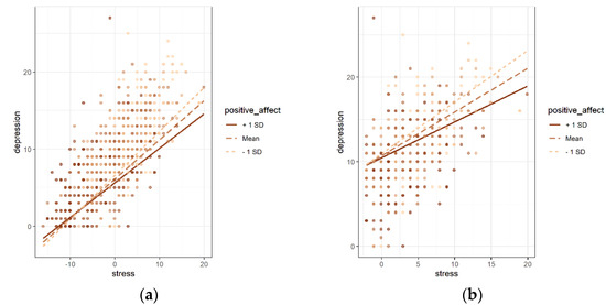 - At the subgroup level, the moderating role of positive affect was different according to the level of perceived stress. Particularly, compared with the subgroup with a low level of stress, the moderating effect of positive affect on the relationship between stress and psychological problems was more significant in the high-stress subgroup.