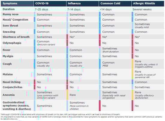 - Hagemann, J.; Onorato, G.L.; Jutel, M.; Akdis, C.A.; Agache, I.; Zuberbier, T.; Czarlewski, W.; Mullol, J.; Bedbrook, A.; Bachert, C.; et al. Differentiation of COVID-19 signs and symptoms from allergic rhinitis and common cold: An ARIA-EAACI-GALEN consensus. Allergy 2021, 76, 2354–2366. [Google Scholar] [CrossRef]