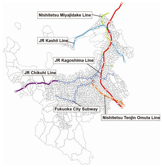 Figure 2. Overview of rail transit lines in Fukuoka, Japan.