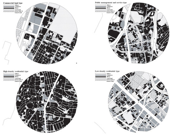 Commerce, business facilities, government agencies, and education facilities are highly distributed in the center of stations, not only around residential areas, but also with various other buildings for different uses. Transportation and storage facilities were distributed within a radius of 400–800 m and tended to be slightly away from the center of the station. In addition, a change trend of plot ratio can be seen within 400 m from the center of the station, indicating that the surrounding area was under development. Within the radius of 0–400 m from the center of the station, the population density shows a rapid growth trend. At the same time, it can be seen that the proportion of condominium increased (Table 4).