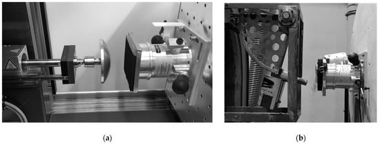Example of the set up in the test benches: (a) Linear motor (left) of the test machine with a tappet and (b) pendulum.