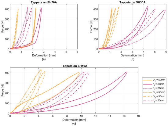 - The compression element 1 (CC1) were compressed up to 400 N with two different tappets. A flat circular tappet with rounded edges and a diameter of 50 mm and a spherical tappet with a radius of 25 mm.