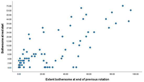 Plot of the extent to which cough bothersome at the start of the next rotation by extent bothersome at the end of previous rotation.
