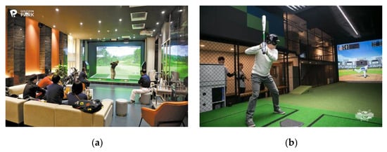 Screen golf (a) and baseball (b) facilities. Source: https://www.joongang.co.kr/article/24018948#home (24 March 2021) (a), https://www.segye.com/newsView/20180701002828 (2 July 2018) (b).