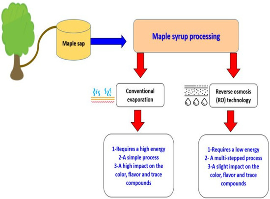 - Bouchard, C.R.; Lebrun, R.E. Concentration polarization modelling in the maple sap concentration by reverse osmosis. Int. J. Food Sci. Technol. 1999, 34, 217–228. [Google Scholar] [CrossRef]