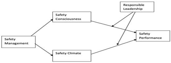 A responsible leadership role in safety management and performance relationship is implicit as the majority of organizations’ central goal is to ensure the value of safety is in the minds of employees []. The personality, values, and choices that employees make, the people they trust, the appeals they respond to, and the way they invest their time and energy in an organization are the outcomes of the values of leadership [,]. Based on social identity theory (SIT) and social exchange theory (SET), responsible leadership is proposed as moderator for the safety consciousness and safety performance and safety climate and safety performance relationships.
