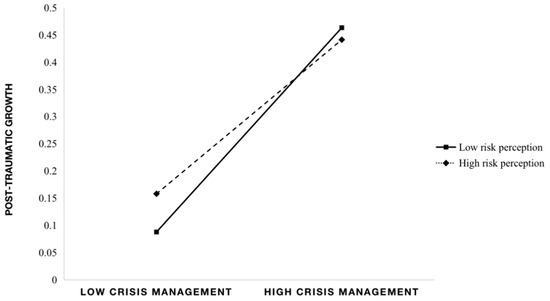 Moreover, we investigated the moderating role of risk perception in the relationship between perceived crisis management and post-traumatic growth. In terms of the moderating role, we hypothesized that no relationship would be found between post-traumatic growth and perceived crisis management at higher levels of risk perception. In contrast, we expected that there would be a positive relationship between post-traumatic growth and perceived crisis management at a relatively moderate level of risk perception.