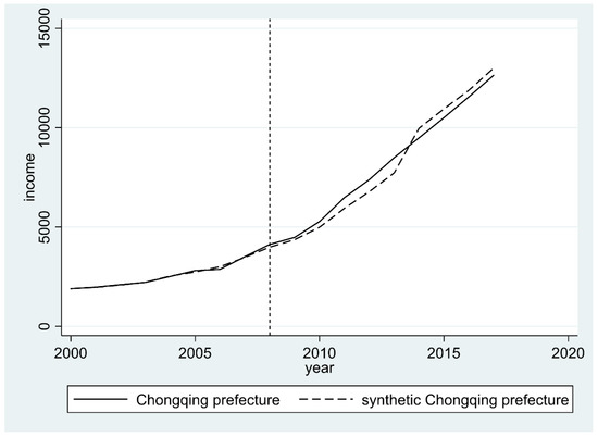 Changes in farmers’ income in real Chongqing and synthetic Chongqing.