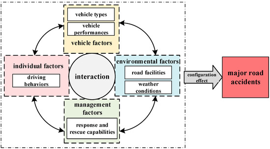 Despite a considerable investment of manpower, material, and financial resources, road accidents are still the major cause of death and injury. Road accidents inflict a severe negative impact on the physical and mental health of the victim and their families, thus reducing their quality of life and work performance [1]. It is noteworthy that major road accidents are regarded as an important issue in safety management in various countries around the world. Specifically, compared to ordinary accidents (general road accidents refers to accidents that cause less than three deaths, serious injuries to less than 10 persons, or direct economic losses of less than 10 million yuan [2]), major road accidents (accidents causing the death of more than 10 persons, or causing serious injury to more than 50 persons, or causing direct economic losses of more than 50 million Yuan [2]) are a huge obstacle in improving overall road safety (the major road accidents in this paper refer to the above road accidents). Major road accidents have serious consequences. In addition, major road accidents happen from time to time. Management aimed at reducing major road accidents has not reached the ideal state. The question of what conditions cause major road accidents is worth considering deeply. By analyzing the development process of road accidents, we can better understand the regularity and internal causes of major road accidents to explore their governance mechanism. Therefore, studies and analyses of major road accidents are urgently needed and are challenging.