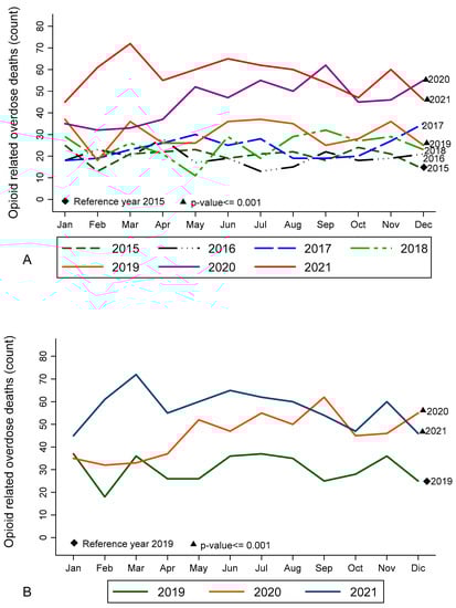 APA StyleLalani, K., Bakos-Block, C., Cardenas-Turanzas, M., Cohen, S., Gopal, B., & Champagne-Langabeer, T. (2022). The Impact of COVID-19 on Opioid-Related Overdose Deaths in Texas. International Journal of Environmental Research and Public Health, 19(21), 13796. https://doi.org/10.3390/ijerph192113796