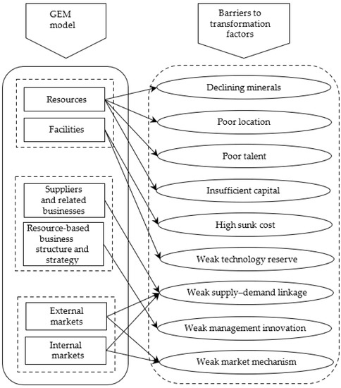 - Tian, J.H.; Xing, X.Q.; Zeng, W.; Lv, F. An analysis of the obstacles to sustainable development of the resource-oriented enterprises based on the GEM model. China Admin. 2008, 3, 68–71. [Google Scholar]