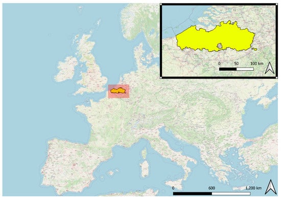 The study area consists of the territory of Flanders, Belgium (Figure 1). Flanders is divided into 300 municipalities and 9194 census tracts. With 6,629,143 people (57.5% of the Belgian population) living on a surface area of 13,625 km2, Flanders is strongly urbanized and one of the most densely populated regions in the world. 1,123,000 people (16.9%) in Flanders are of school-going age (2.5 to 17 years) and 1,372,232 are over 65 (20.7%) [43].