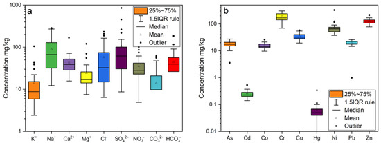 - Liang, J.; Feng, C.; Zeng, G.; Gao, X.; Zhong, M.; Li, X.; Li, X.; He, X.; Fang, Y. Spatial distribution and source identification of heavy metals in surface soils in a typical coal mine city, Lianyuan, China. Environ. Pollut. 2017, 225, 681–690. [Google Scholar] [CrossRef]