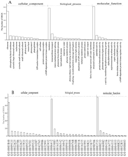 As shown in Figure 2, the ribosome and structural constituents of ribosome were dominant in CC and MF, respectively, and this indicated that the gene about protein synthesis and regulation was significantly affected by Pb2+ stress [22]. In addition, peptidase activity, protein-containing complex, cAMP-dependent protein kinase complex, intein-mediated protein splicing, glutamine biosynthetic process, protein stabilization, protein heterodimerization activity, glutamate-ammonia ligase activity, and cAMP-dependent protein kinase regulator activity and the like polypeptide-associated genes were significantly affected by Pb2+ stress. MT concentration in Cladophora increased as the Pb concentration increased [6]. Non-protein thiols (NPT), GSH, and phytochelatins (PCs) increased significantly with increasing Pb stress in the cell wall and soluble fraction [8], suggesting that MT, NPT, GSH, and PCs are important candidate genes for Pb2+ stress resistance in C. rupestris [6,8]. Genes related to GSH (GSH1 and GSH2) and PCs (PCS1 and PCS2) were also increased in apx1-3 plants subjected to Pb stress [23].