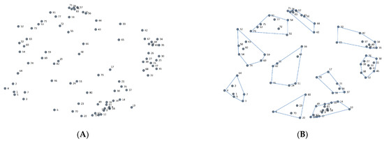 An example of a point map (A) and a possible cluster solution (B). Note. Dots represent individual statements that have been sorted by the participants.