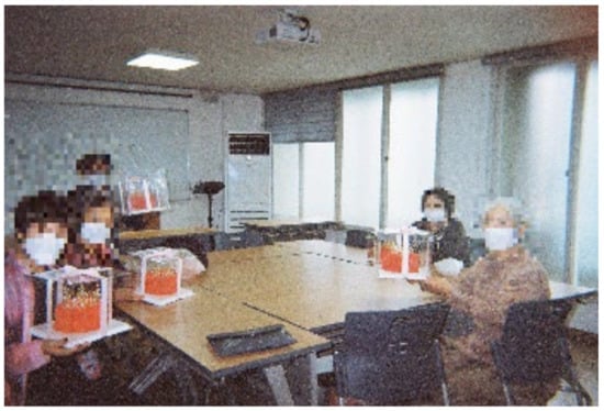 In the photovoice implementation session, participants were trained on the use of disposable cameras, the decision of what photographs to take, and ethical issues related to taking photographs. Every participant received disposable cameras, with an approximate capacity of 27 photographs. The disposable camera was for taking photographs related to perceived problems or barriers to physical activity. After the orientation, participants resumed their daily routines for approximately two weeks and took photographs [21]. In addition, gifts such as terabands and grip balls were given to the older adults who participated even in one research process.