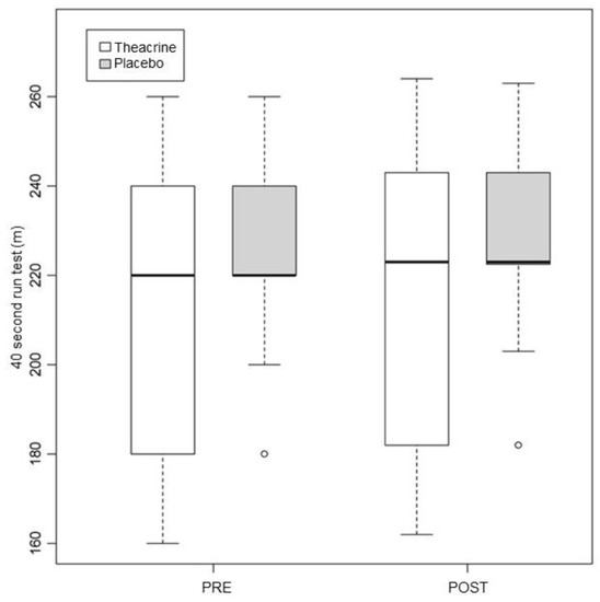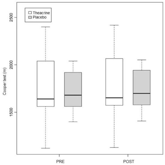 One of those studies, conducted by Bello et al. (2019), evaluated 24 footballers of both sexes (10 men and 14 women) [13]. The subjects carried out the tests in four different conditions, namely: 275 mg of theacrine (TCr); or 275 mg of caffeine (Caf); or both combined, with 125 mg of theacrine and 150 mg of caffeine (TCr + Caf); or ingesting a capsule containing a placebo substance. A treadmill run test was conducted until fatigue, at an intensity of 85% VO2max, as well as cognitive tests. The run test was conducted after a football match simulated on a treadmill (the athletes ran for 45 min, rested for 15 min, then ran for another 45 min, at similar intensities to those executed during a typical football match). The cognitive tests were conducted during the interval and straight after the second period of the simulated match. There was no significant difference between any of the groups for all the evaluated parameters. The authors found only a tendency for improvement for the three intervention groups when compared to the placebo group.