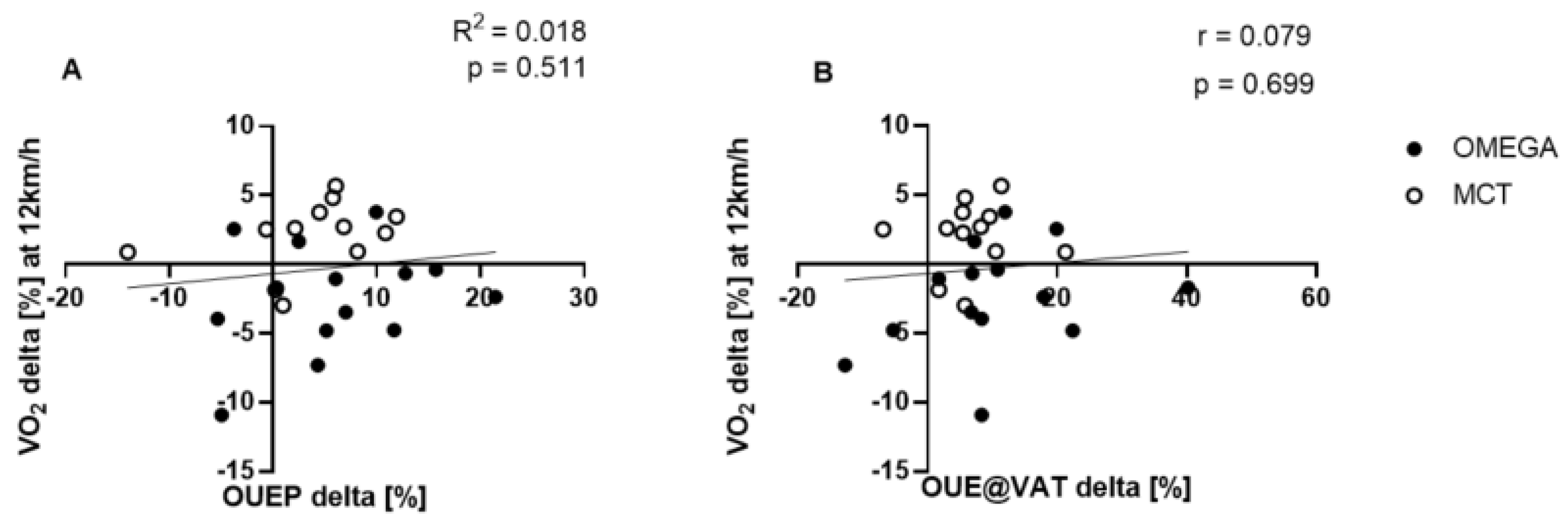Improved Oxygen Uptake Efficiency Parameters Are Not Correlated with VO2peak or Running Economy and Are Not Affected by Omega-3 Fatty Acid Supplementation in Endurance Runners