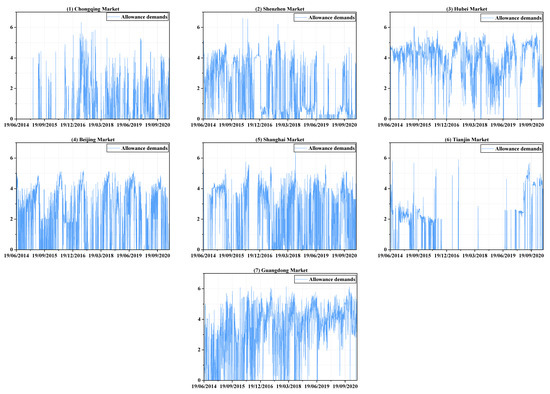 - Xiao, Z.; Ma, S.; Sun, H.; Ren, J.; Feng, C.; Cui, S. Time-varying spillovers among pilot carbon emission trading markets in China. Environ. Sci. Pollut. Res. 2022, 29, 57421–57436. [Google Scholar] [CrossRef]