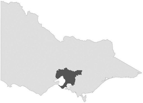 Boundaries for major cities (Greater Melbourne), dark grey, and regional. Victoria, light grey.
