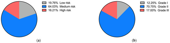 (a) Proportion of each caries risk grade; (b) Proportion of each treatment difficulty grade.