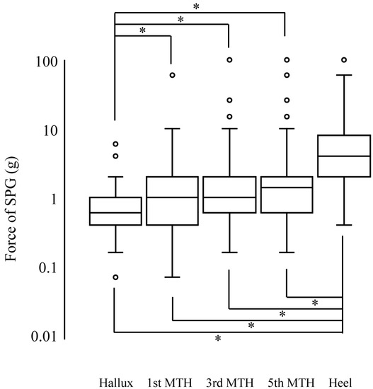 | Hallux | 1st MTH | 3rd MTH | 5th MTH | Heel | |