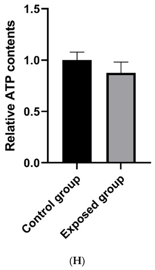 As shown in Figure 3F, compared with the control group, the mitochondrial ATP content in the testicular tissue of the exposed group was significantly decreased.