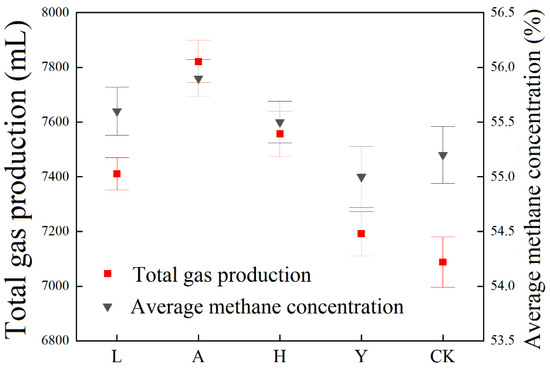 Total biogas production and average methane concentration in biogas residue from pig manure anaerobic digestion.