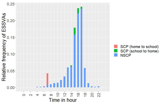 Time distribution of the occurrences of ESSVAs in the target area by travel purpose.