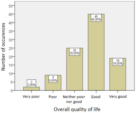 Figure 1 shows the distribution of answers to the question about the overall quality of life of the respondents.