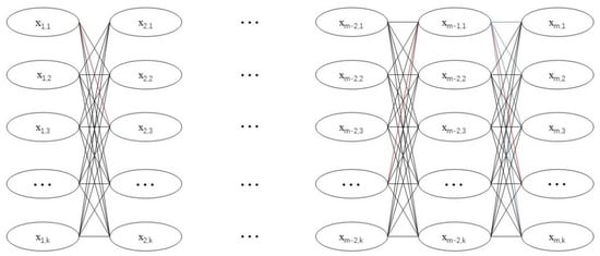 Figure 6 shows the description of DP for the specific problem discussed in this paper. X represents the combination of the indoor temperature and the remaining fresh air opening time. The first subscript represents the time, and m is the length of the time series. The second subscript of each state number is the number of states, assuming there are k states. In this research, one day is divided into 24 stages with time step of one hour, m = 24.