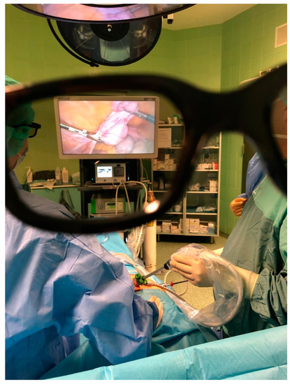 Even for experienced laparoscopic surgeons, the flat, depthless image is problematic. The solution to this problem seems to be the use of optics, enabling the use of a three-dimensional image, which will improve perception during the procedure. A. Zwimpfer et al. showed that, regardless of the operator’s experience, the use of 3D imaging reduces the time, increases accuracy, and reduces the number of errors made during the task [27]. The depth perception obtained thanks to the use of 3D imaging increases the quality of visualization, which leads directly to the number of detected changes. In the analysis comparing the quality of imaging, out of 598 lesions of the endometriotic nature, 595 lesions (99.5%) were spotted using the 3D technique, and 474 lesions (79.3%) were spotted with the conventional technique. Three-dimensional laparoscopy also detected nearly twice as many peritoneal defects as in 2D imaging [28].