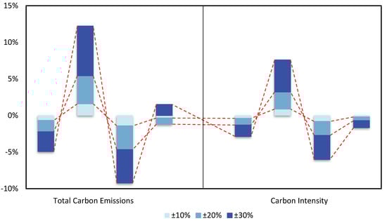 Impact of different scenarios on total carbon emissions and carbon intensity Unit: %.