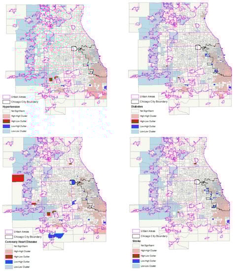 - Huang, H. A Spatial Analysis of Obesity: Interaction of Urban Food Environments and Racial Segregation in Chicago. J. Urban Health 2021, 98, 676–686. [Google Scholar] [CrossRef]