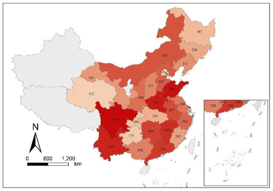 Provincial spatial distribution of valid samples in China.