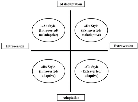 Response Styles to the Pandemic and Lockdown(s): The RSPL, an ad-hoc instrument developed by our group [83], consists of four vignettes representing distinct affective, cognitive, and behavioral styles of response to the pandemic and the restrictive measures imposed during the lockdown(s). The response patterns were derived from the intersection of two psychological dimensions: introversion vs. extraversion and adaptation vs. maladaptation to reality. These four patterns describe individuals presenting with distinct intra- and interpersonal characteristics, as follows: introverted-maladaptive style (A); introverted-adaptive style (B); extraverted-adaptive style (C); and extraverted-maladaptive style (D) (see Appendix A). For example, maladaptively extraverted individuals (D style) tend to show a reckless disregard for the rules and restrictions imposed by the government to mitigate the pandemic effects. They seem to be indifferent to the rights and safety of others. They are impulsive and appear indifferent to the consequences of their actions. These individuals seem unable or unwilling to modify their behaviors, not respecting any limits and failing to adapt to reality in an appropriate and socially acceptable way.