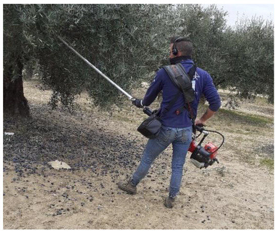 The sector has increased its productivity and competitiveness by incorporating machinery that reduces harvesting times. Deboli et al. [82] show that productivity can be tripled with the use of hand-guided electric machines. Machinery manufacturing companies offer a wide range of hand-guided tools (comb, hook, flap, beater, comb, hook, flap and beater). The most commonly used in Andalusia are hook and comb type harvesters.