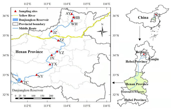 Locations of sampling stations in the MRP of the SNWD in Henan Province.
