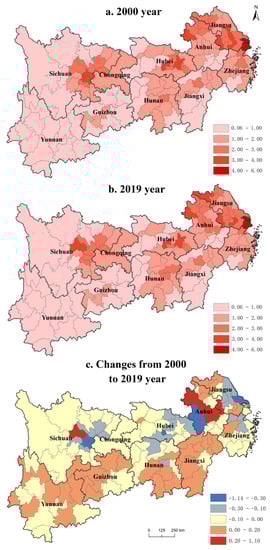 The evolution pattern of economic geographic concentration from 2000 to 2019.