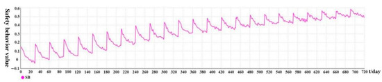 Although we described the construction idea of the simulation model above, we also needed to initialize the relevant parameters before simulating. INITIAL TIME = 0, FINAL TIME = 720, TIME STEP = 1 were set, and the UNIT for TIME was day. Thus, we simulated 2 years (system TIME 1 month = 30 days) and recorded the safety behavior value of workers once per day.