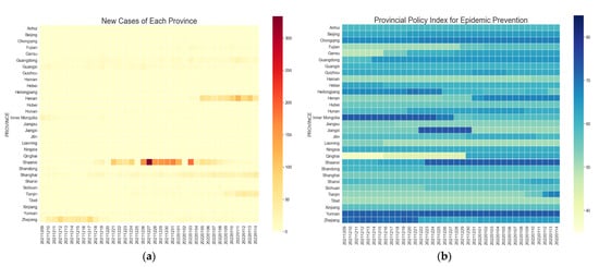 The visualization results of the provincial-scale epidemic case data and the epidemic prevention policy index are shown in