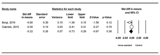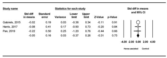 Meta-analysis results for the effects of horse-assisted therapy vs. control intervention.