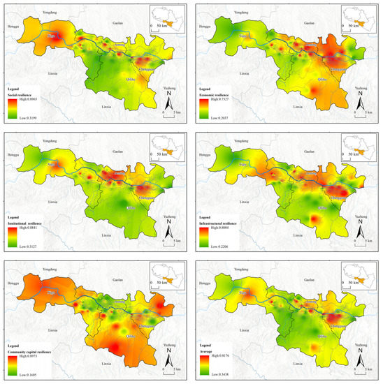 For Lanzhou, China, the average urban community resilience index was 0.5157. In terms of the resilience index of different types of communities, urban apartment community was the highest (0.6606), followed by suburban community (0.5163), mountain slope courtyard community (0.4697), and urban scattered community was the lowest (0.4161). When the resilience value of different dimensions are comprehensively compared, the rankings are as follows: community capital resilience (0.5789) > social resilience (0.5333) > institutional resilience (0.5202) > economic resilience (0.4927) > infrastructural resilience (0.4534).