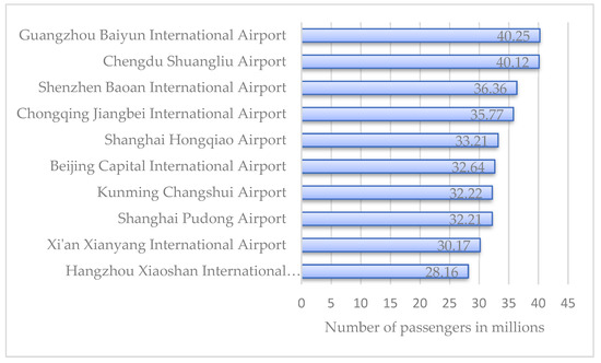 Top-ten leading airports in mainland China in 2021, by passenger throughput.